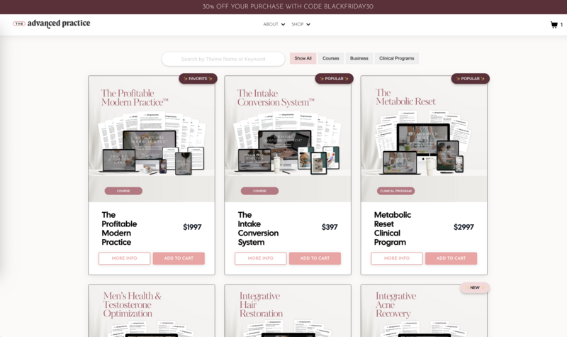 Shop The Advanced Practice Product Suite and get access to any combination of our done-for-you clinical programs and courses the lowest investment of the year